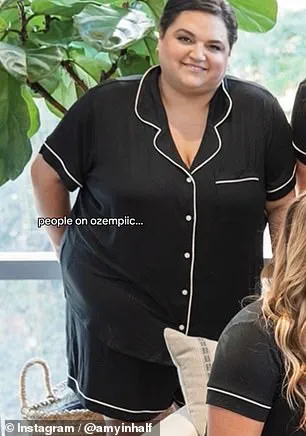 In her videos, Mrs. Kane shows her saggy stomach to highlight a less-discussed side effect of weight loss drugs. ‘I have excess skin now,’ she says candidly in one video, demonstrating how the transformation can bring unexpected physical changes.