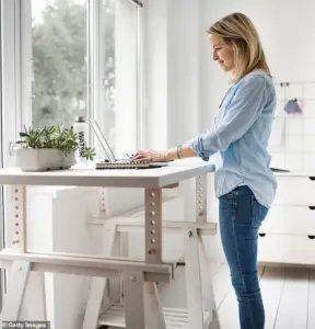 Patel alternates between sitting and standing at her desk, a practice that boosts blood flow and supports heart health.