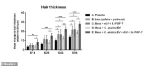 The full serum, which combined caffeine, panthenol, growth factors, and Centella asiatica-derived vesicles, outperformed all other formulations.