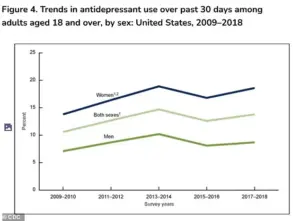 Between 2009 and 2018, antidepressant use saw a marked increase among women, rising from 13.8 percent to 18.6 percent.