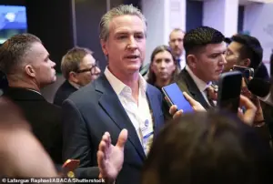 The California governor also criticized European leaders for their reluctance to confront Trump directly, suggesting that their behind-the-scenes disdain for the president contrasted sharply with their public appeasement. ‘Everybody’s talking behind his back,’ Newsom said. ‘They’re laughing at him.