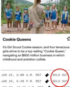 The documentary, which premiered at Sundance but remains without a distributor, is described as a ‘bold, vibrant, observational portrait’ of Girl Scout cookie season.