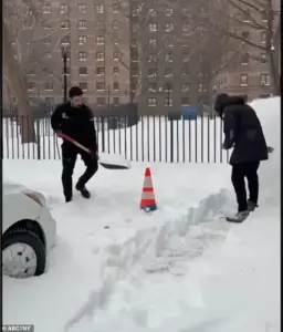One viewer on X (formerly Twitter) quipped, ‘You can tell Mamdani has never touched a shovel in his life,’ while others joked that he looked as though he were ‘digging a hole instead of clearing the road.’ The mayor’s efforts, however, were not without context.