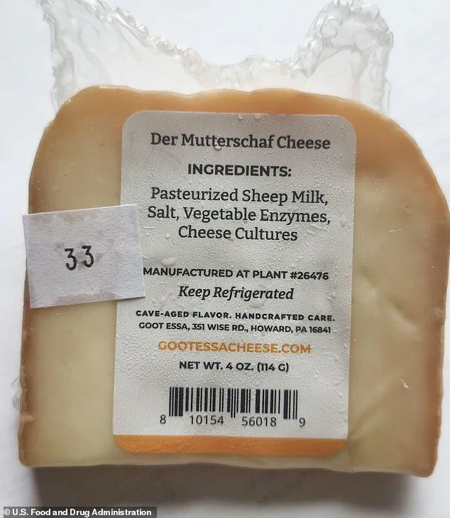 Food and Drug Administration (FDA) issues a Class 1 recall for 64 pounds of 'Der Mutterschaf' cheese, a product now linked to potentially life-threatening risks, including miscarriage and death.